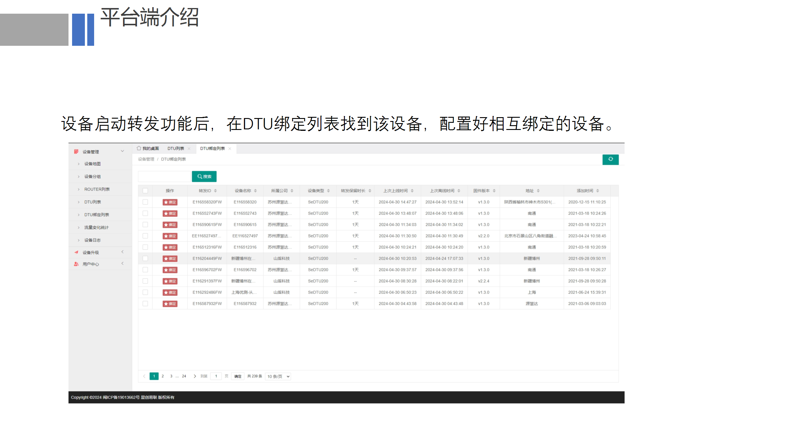 服务器安装了两部分软件,组建成了MQTT转发服务端程序 MQTT服务端软件,用于搭建MQTT通信网络; MQTT转发程序,这个是我们自研软件,该软件会从数据库中读取所有的转发绑定规则,当设备上线后并且收到数据,该软件会根据规则自动转发给与其绑定的设备;